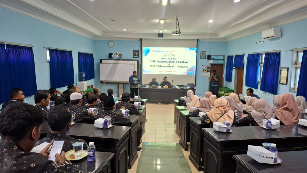 Malang – Seluruh guru dan karyawan SMK Muhammadiyah 1 Surabaya melakukan kunjungan studi tiru ke SMK Muhammadiyah 1 Kepanjen, Malang, pada Jumat, 12 September 2024. Kunjungan ini merupakan bagian dari upaya berkelanjutan SMK Mudisa untuk meningkatkan kualitas pendidikan dan manajemen sekolah, khususnya di bidang vokasi.