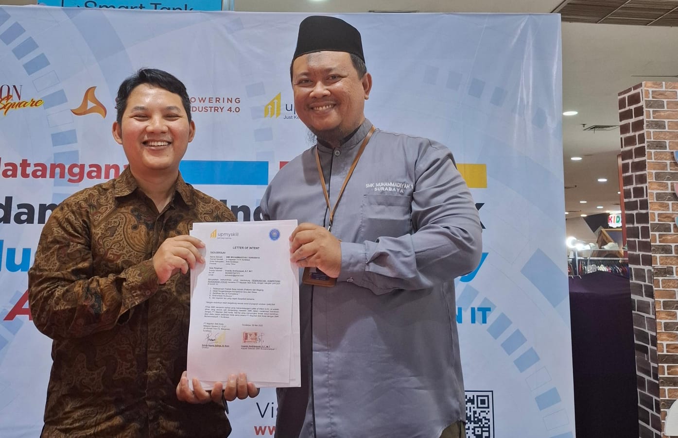 Surabaya – SMK Muhammadiyah 1 Surabaya telah perkuat komitmennya dalam penguatan digitalisasi pendidikan vokasi dengan menandatangani Nota Kesepahaman (MoU) bersama Maspion IT, SSD International, dan UpMySkill pada Kamis (8/5/2025) di Atrium Maspion Square, Jl. Ahmad Yani 73 Surabaya sejak pagi. Dengan menandatangi MoU bersama ini, SMK Mudisa siap menjadi bagian dari Program Pendampingan Industri Teaching Factory (TeFA) untuk seluruh kompetensi keahlian sekolah vokasi.