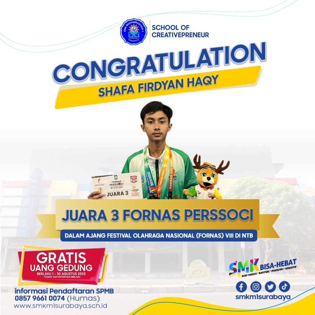 Fornas VIII merupakan ajang bergengsi yang mempertemukan atlet-atlet terbaik dari seluruh Indonesia. Keberhasilan siswa SMK Muhammadiyah 1 Surabaya ini menunjukkan bahwa pembinaan olahraga di sekolah tersebut berjalan dengan efektif. Prestasi ini menjadi bukti nyata bahwa SMK Muhammadiyah 1 Surabaya tidak hanya fokus pada pendidikan akademis, tetapi juga memberikan perhatian serius pada pengembangan bakat dan minat non-akademis siswanya.